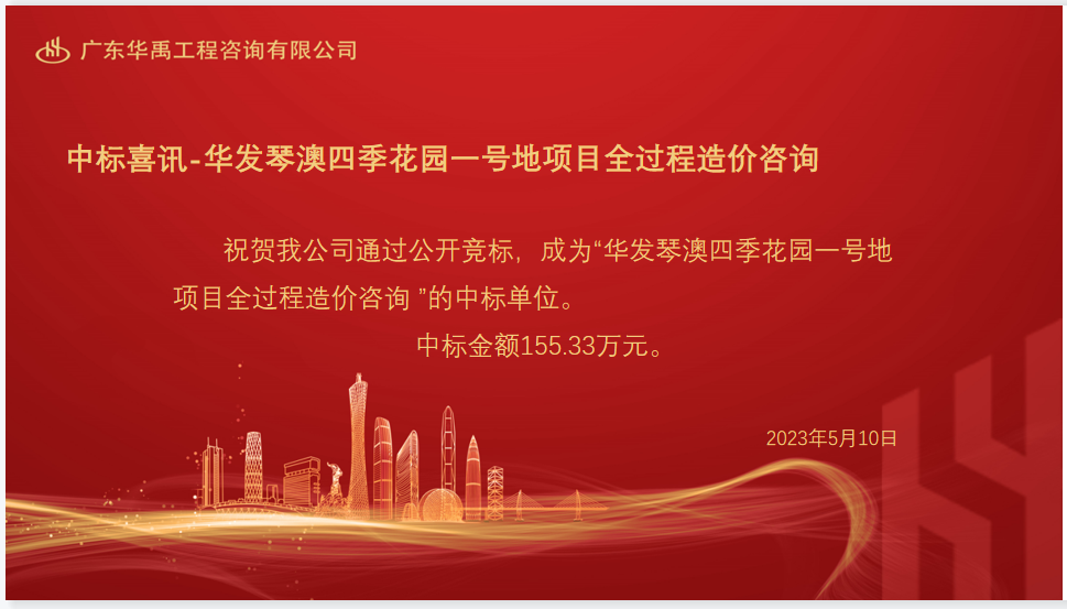 喜讯 - 华发琴澳四季花园一号地项目全过程造价咨询