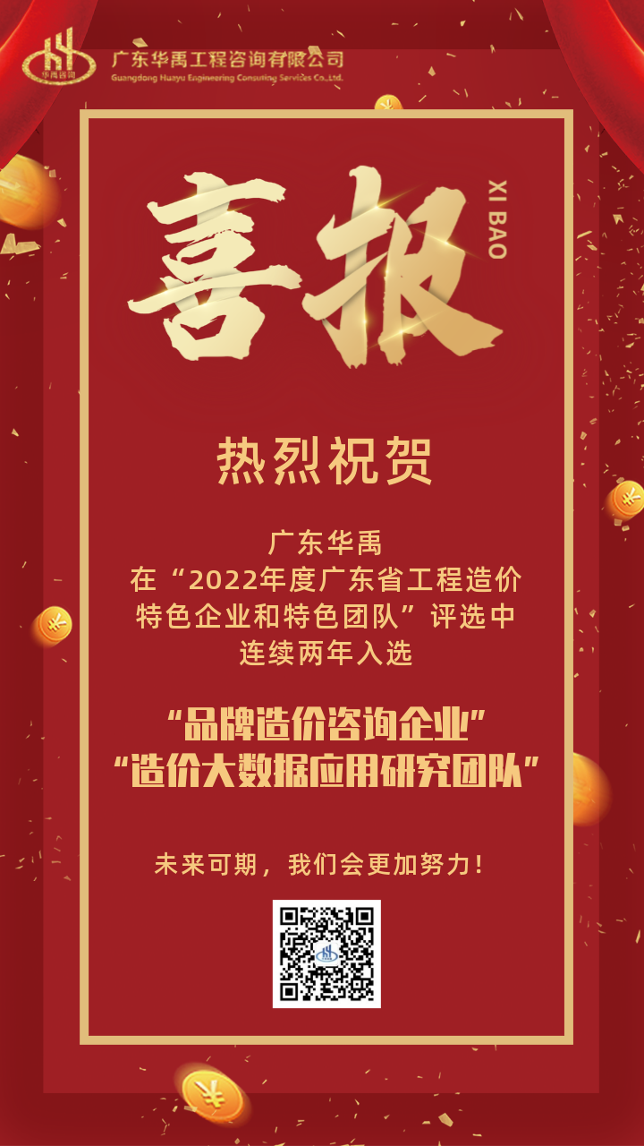 喜报 - 2022年度广东省工程造价特色企业和特色团队评选中连续两年入选