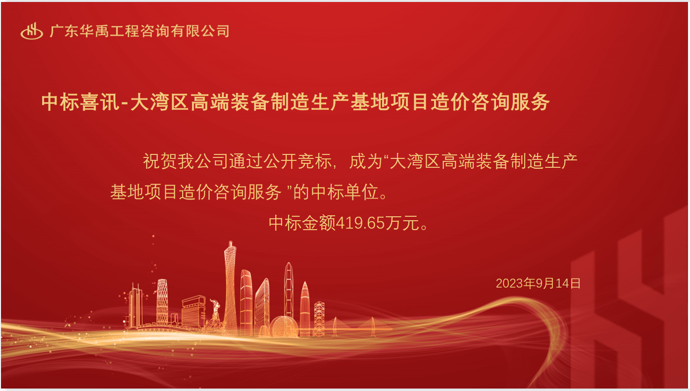 中标喜讯-大湾区高端装备制造生产基地项目造价咨询服务