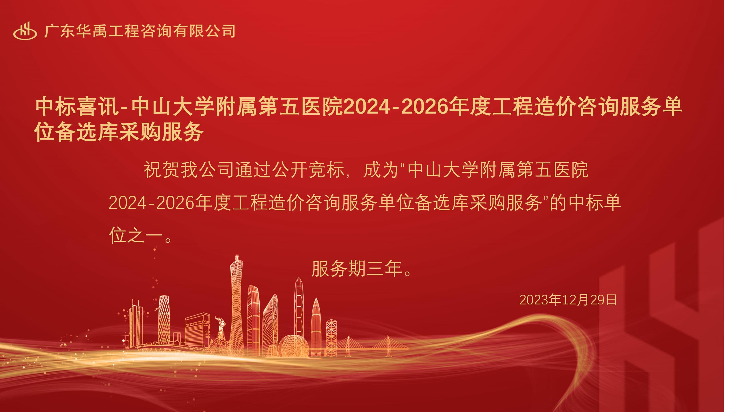中标喜讯 - 中山大学附属第五医院2024-2026年度工程造价咨询服务单位备选库采购服务