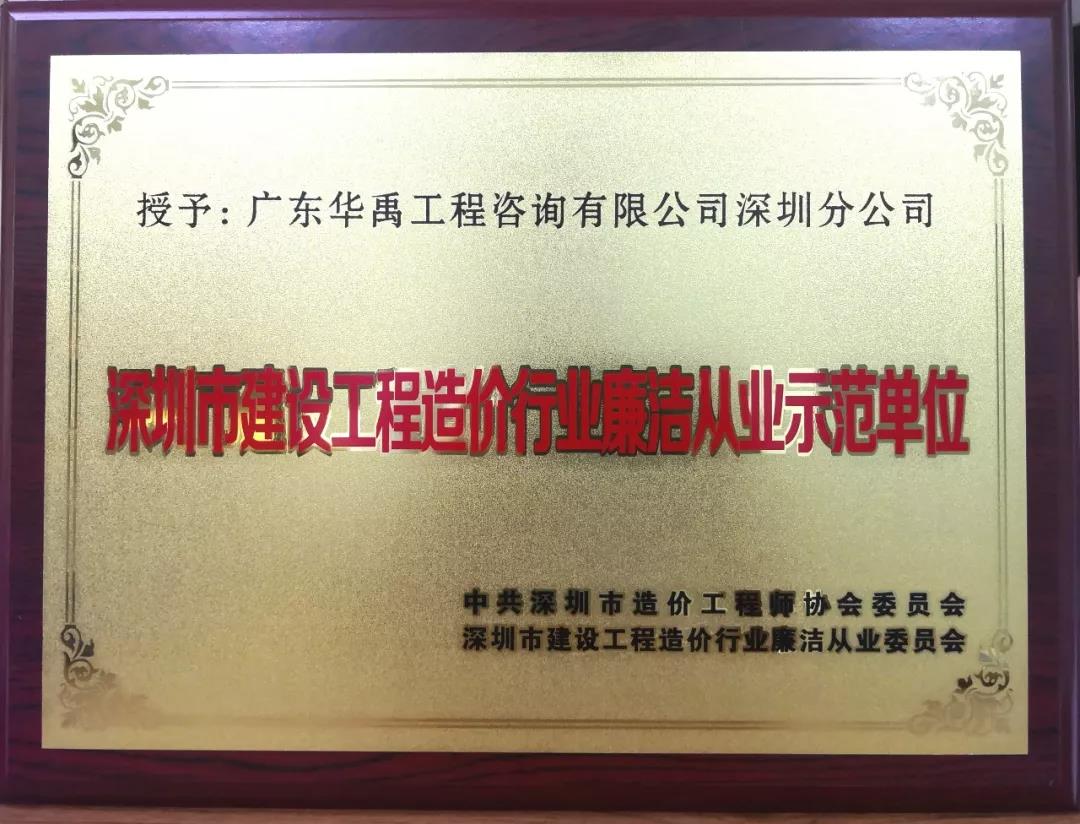 《深圳市建设工程造价行业廉洁从业示范单位》