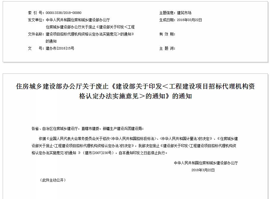 住房城乡建设部办公厅关于废止《建设部关于印发<工程建设项目招标代理机构资格认定办法实施意见>的通知》的通知